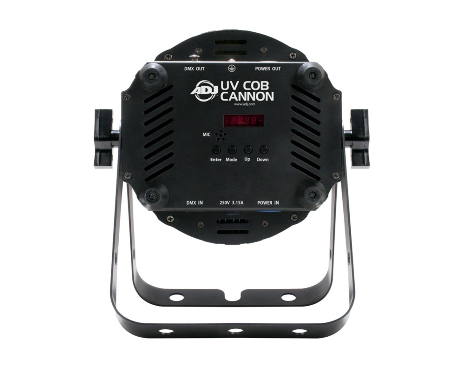 The ADJ UV COB Cannon produces a large ultraviolet wash from high output, advanced COB (Chip On Board) UV LEDs–COB LED technology allowing for a powerful LED engine to be placed in a small amount of space.