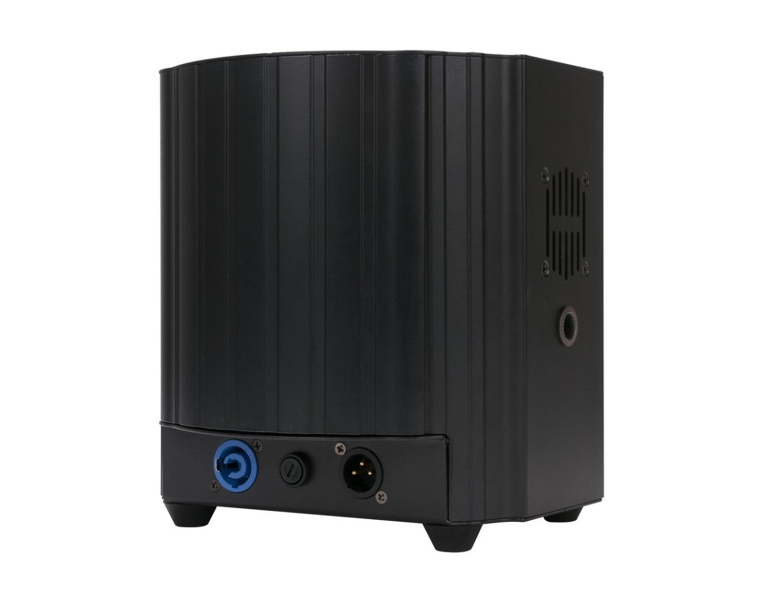 The UV COB Cannon has 3 operational modes (sound active, manual or DMX), has 3 DMX operational modes, 5 selectable dim curves, a 4-Button DMX Display and is flicker free for film and television. This fixture is DMX linkable via 3-pin DMX, and is power linkable via Locking Power connections. The light source is a 100-Watt COB (Chip On Board) UV LED engine.