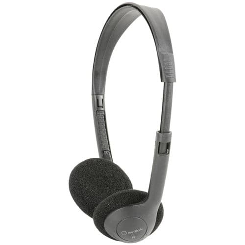 Stylish stereo headphones with an adjustable headband and low-profile padded earcups. Ideal for use in any situation where long-lasting comfort is a must.