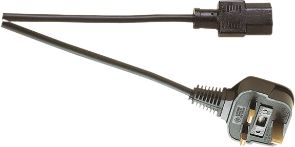 Moulded IEC line socket to moulded 3 pin UK plug.