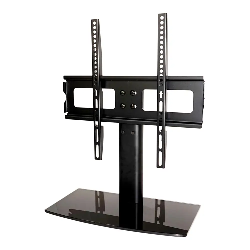 The Universal table top TV pedestal stand allows you to safely mount your TV on table tops, dining room tables and sideboards etc. The stand can also be used when you want to change a wall-mounted screen to a table top one. The stand is height adjustable allowing you to raise your TV to the optimum viewing height, this creates storage space under the TV screen for speakers, sound-bars, DVD Player’s or satellite boxes. The large footprint of the base ensures stability and the base itself is manufactured from 8mm black tempered safety glass. The stand is offered in 2 sizes so that the majority of TV’s can be accommodated.