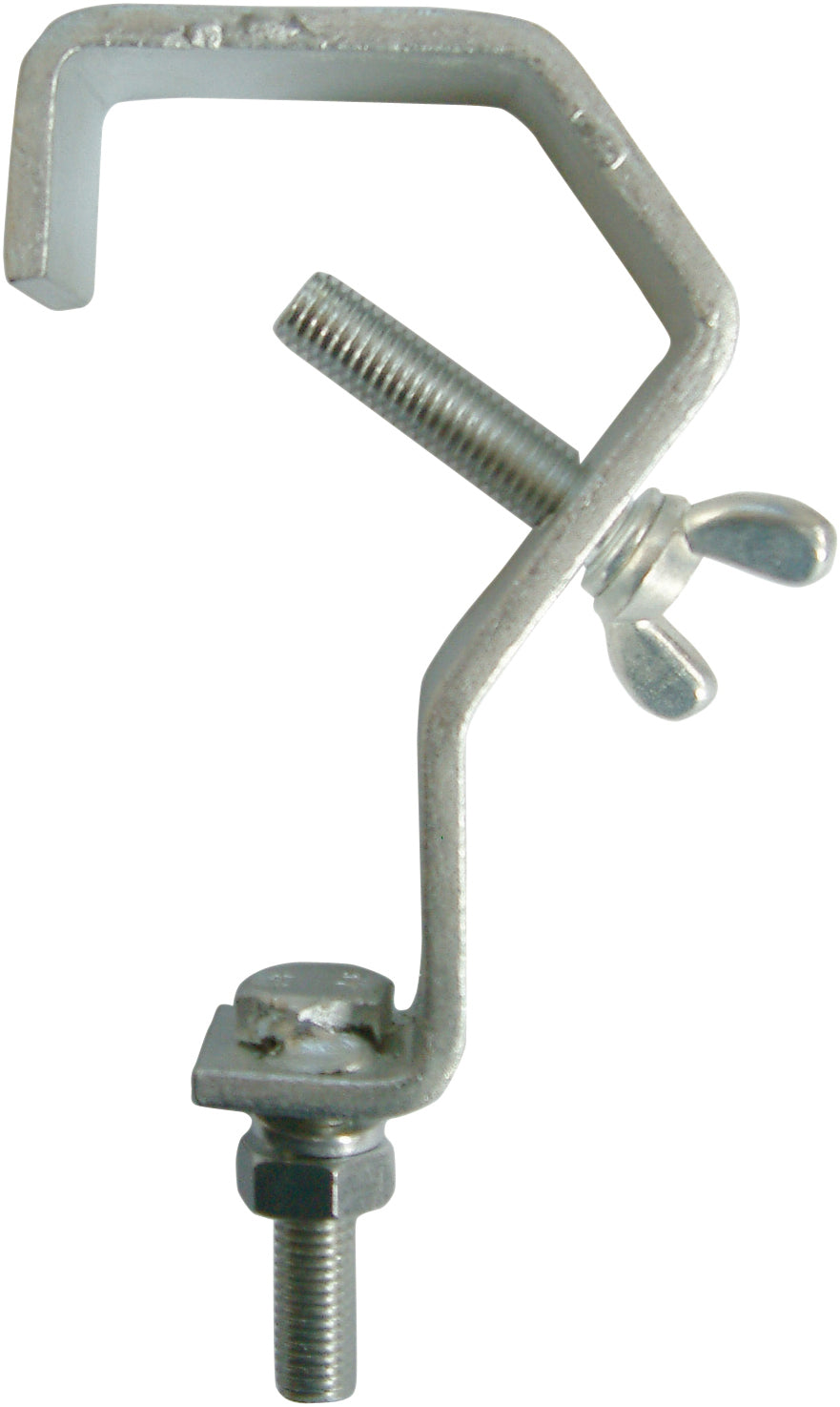 A heavy duty G clamp for trussing up to 50 mm, featuring a locking screw and M10 mounting with washer, maximum load of 25kg.
