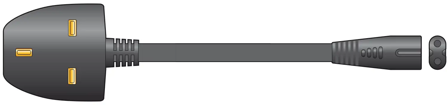 An IEC plug to IEC socket mains extension lead, ideal for powering a desktop monitor from a tower computer or for extending existing IEC mains leads.