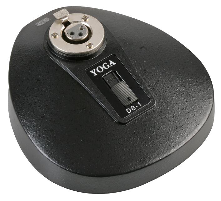 A heavy duty, desktop mic stand with on/off switch for use with dynamic gooseneck microphones.