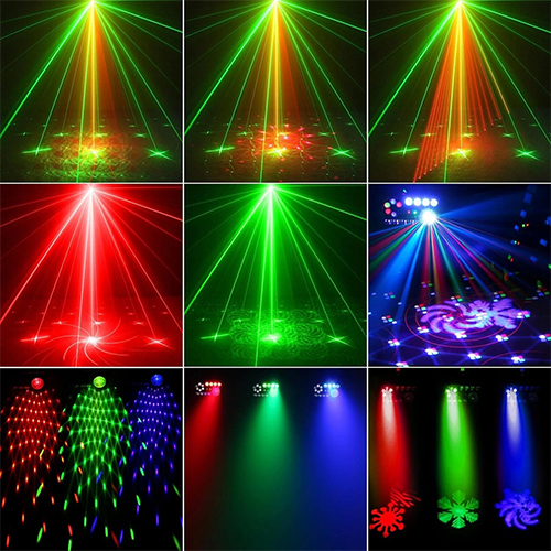 Comprising colourful GOBOs, PARs, Magic ball, UV/Strobe and red/green laser effects