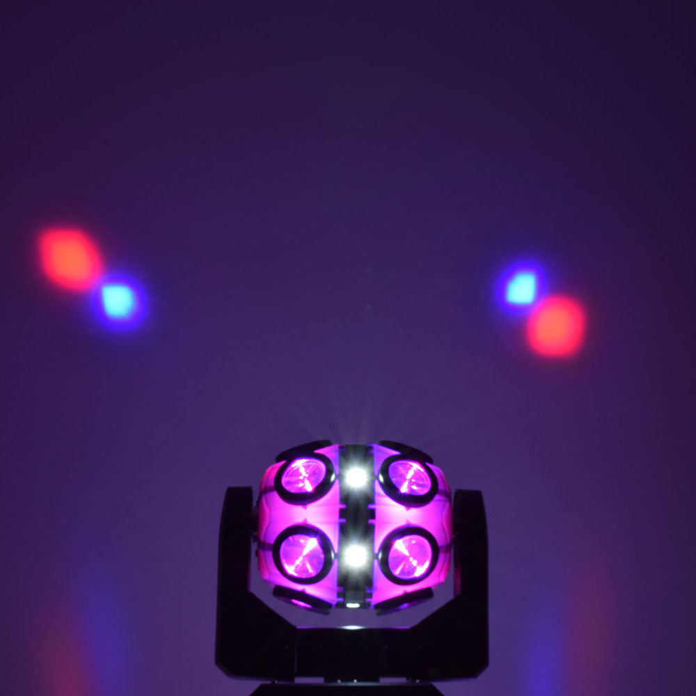 A dazzling moving head comprising 12 powerful 10W RGBW LEDs and 6 U/V LEDs which combine with 360° tilt movement to provide room filling effects from any position. The unit can be operated on auto, sound-to-light or DMX modes and can be free standing or mounted to trussing using the supplied fixing bracket and is ideal as a centrepiece light in bars, nightclubs and functions.
