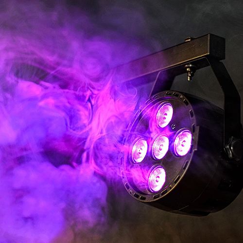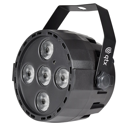Mini LED PAR light in a lightweight moulded housing with 5 x 4W quad colour LEDs.