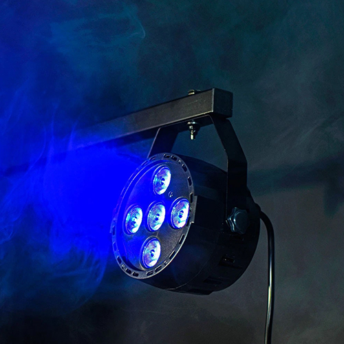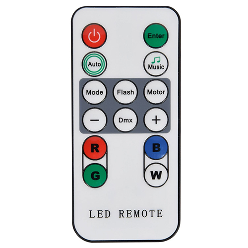 Mini LED PAR light in a lightweight moulded housing with 5 x 4W quad colour LEDs. Compatible with DMX512 or controllable via internal auto and sound activated programs, which can be accessed from the included IR remote control. As a standalone can or as part of a large DMX installation, the PAR-20 gives a powerful light output with excellent coverage.