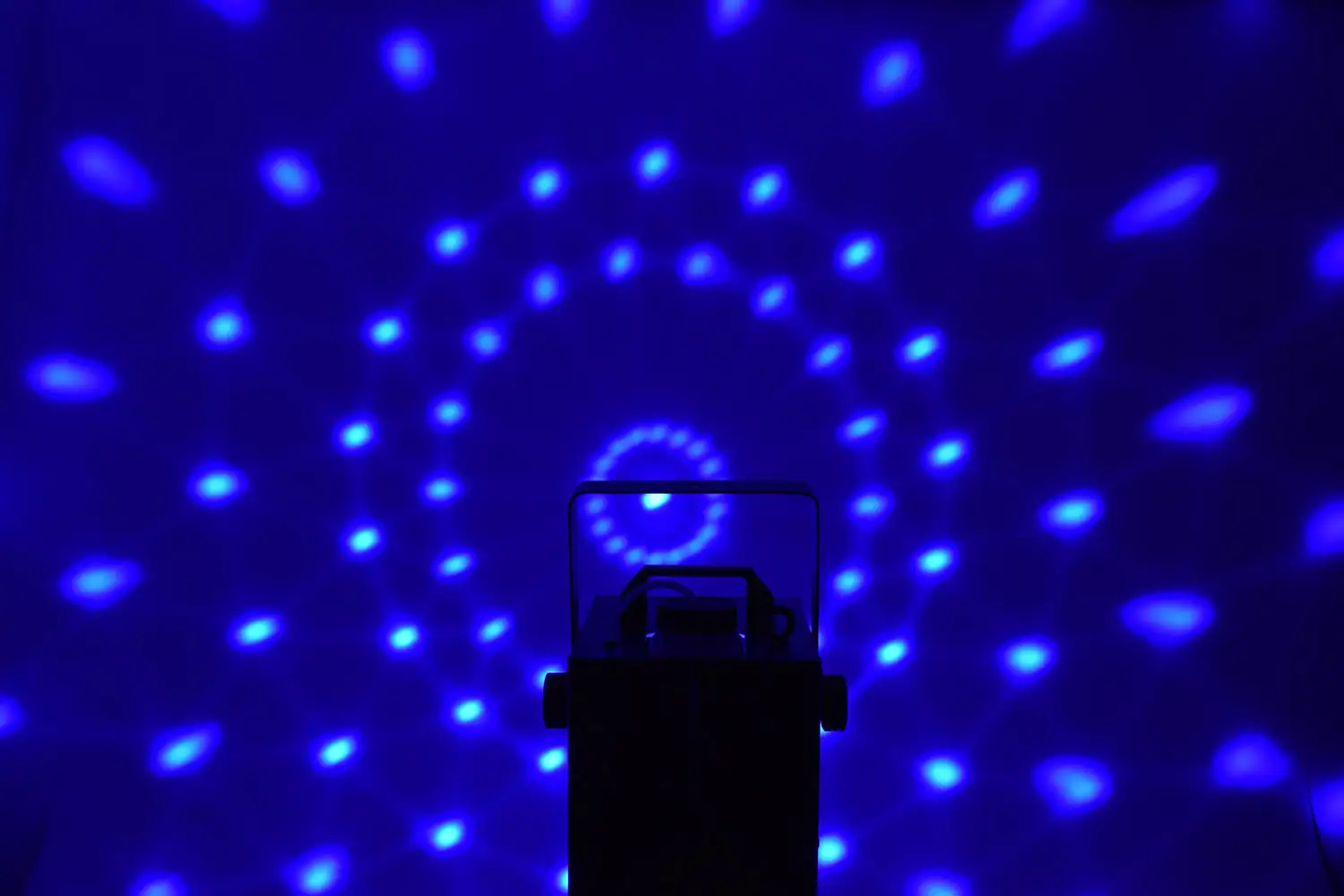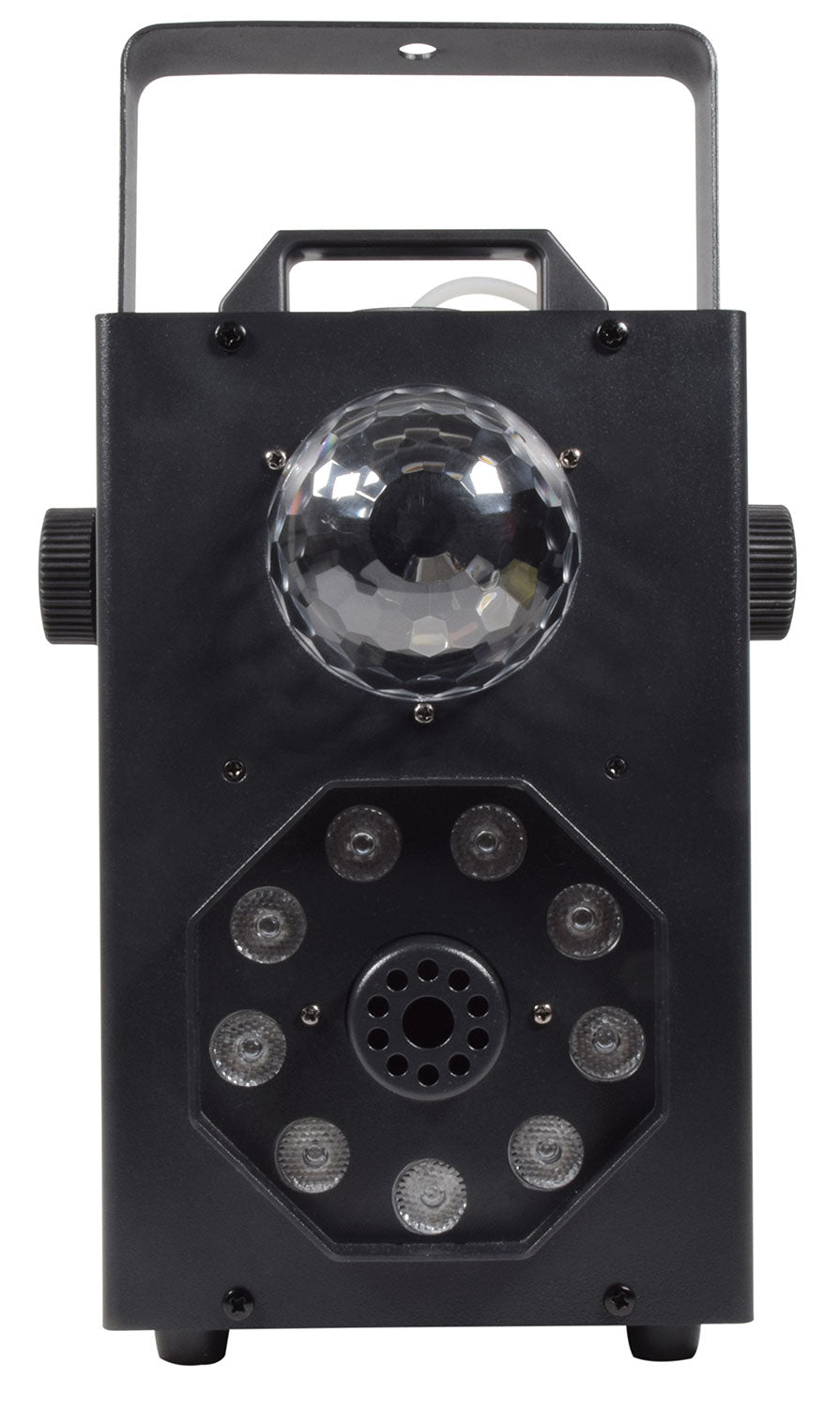 Nine 1W LEDs and a 1W magic ball add a bright colourful light show to the smoke effect